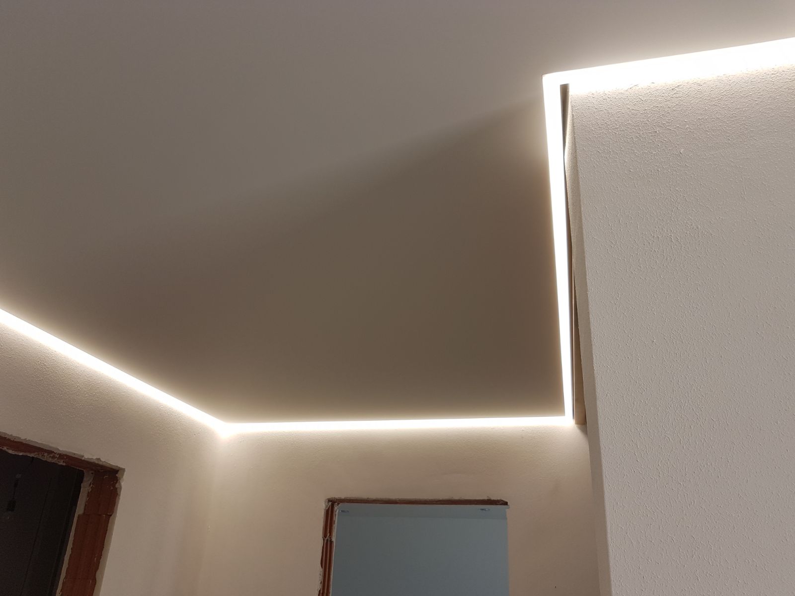 - Cu tavanele extensibile se potriveste orice tip de iluminat, inclusiv cel de tip LED sau RGB cu efect de dispersie a luminii.