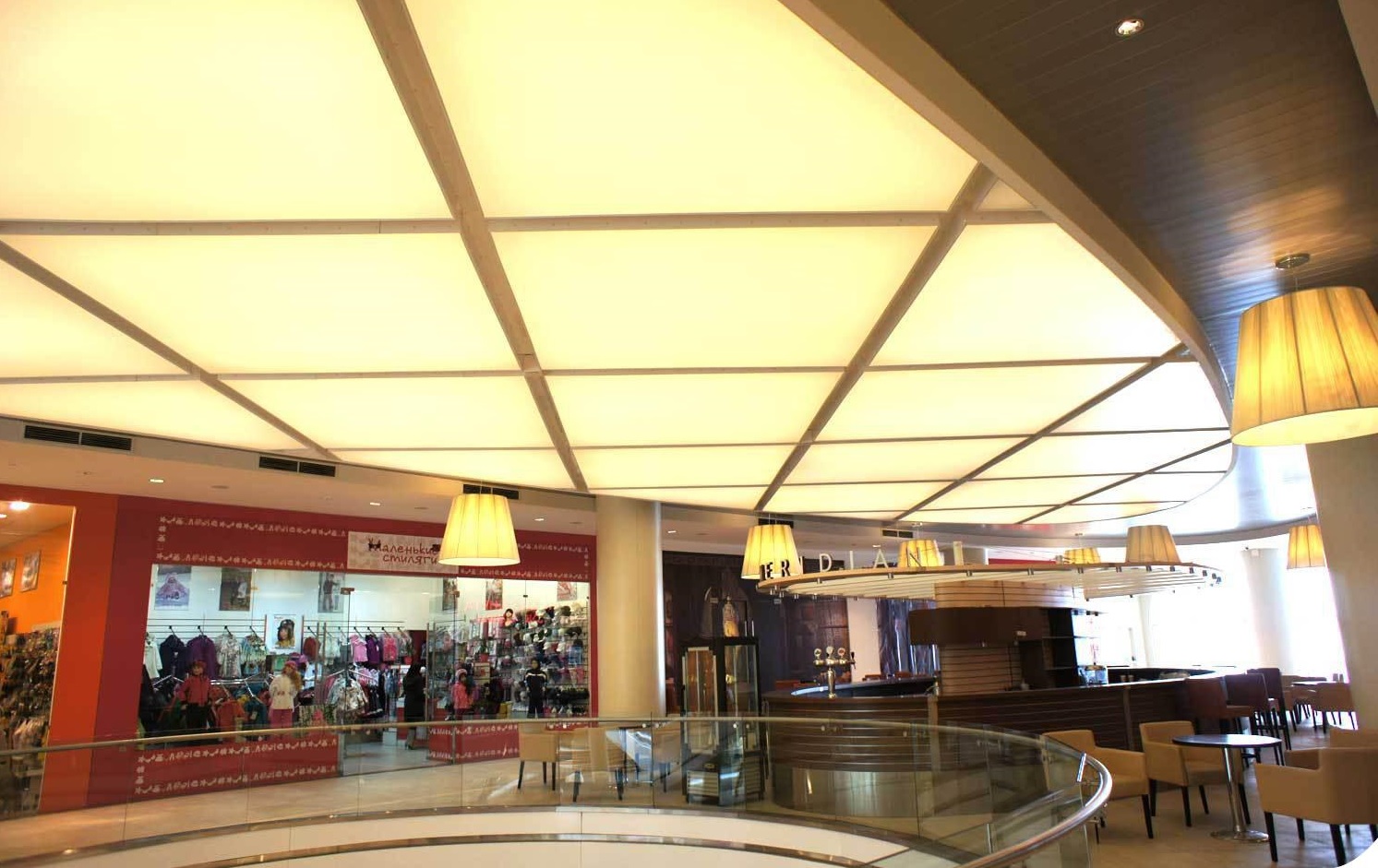 - Diviziunea zonala – Daca este nevoie sa separi receptia, un mediu sau un loc rezervat, o fantana in centrul salii sau, pur si simplu, sa imparti un local/ sala mare in mai multe zone, cea mai buna alegere este tavanul extensibil. Designerii evidentiaza, pe buna dreptate, orice parte din interior cu texturi diferite, nivele diferite sau nuante in tavan.